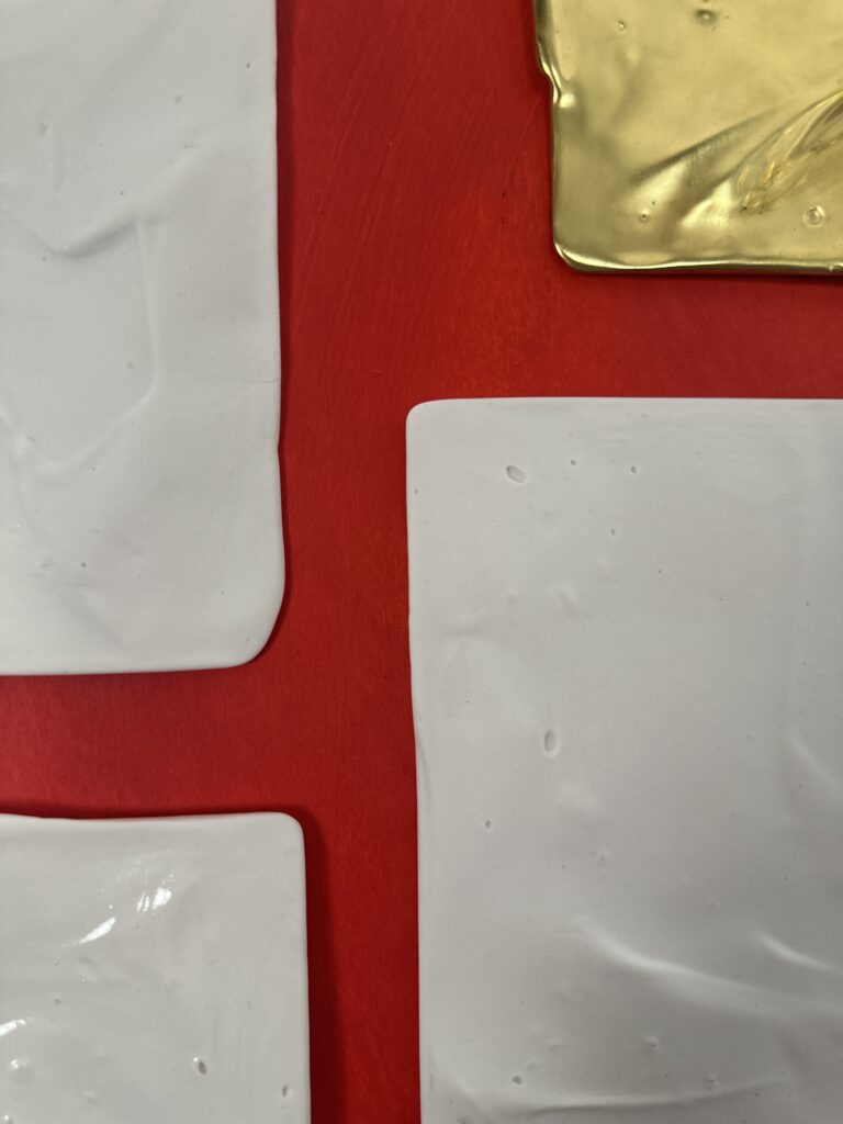 Technik: Porzellan, Acrylfarbe auf Holz, vergoldet